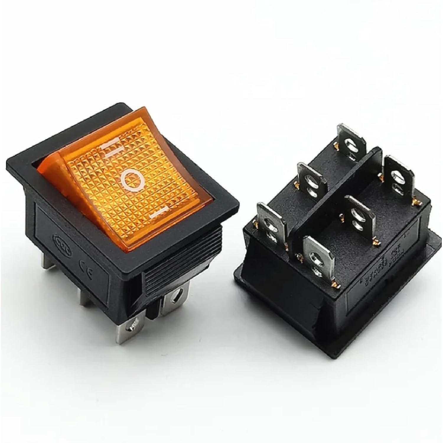 This versatile KCD4 rocker switch offers reliable power control with its 3-position (ON-OFF-ON) functionality and illuminated indicator. Built for demanding applications, it features a robust 20A current rating at 250VAC, making it ideal for various electrical equipment and devices. The 6-pin DPDT configuration provides flexible circuit control options, while the durable black plastic housing ensures long-term reliability. The integrated light indicator clearly shows the switch status, enhancing operational safety and convenience. Perfect for industrial equipment, power tools, and professional applications where dependable switching is essential. The switch's compact design and standard mounting configuration make it suitable for both new installations and replacements. Its tactile feedback provides positive confirmation of position changes, while the professional-grade construction ensures consistent performance under regular use. This power switch combines practical functionality with industrial-grade durability, making it an excellent choice for both OEM applications and maintenance requirements.